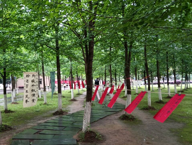 武职网讯(大学生记者 张清贵)4月22日至23日,武职关山校区凌曦楼旁银杏林绿意盎然,林间惠风和畅,翰墨沁香,由武汉职业技术学院书法协会策划主办的“墨映伟业,笔续征途”主题书法展在此展出,形式多样、风格各异的书法作品吸引了不少师生驻足品赏。