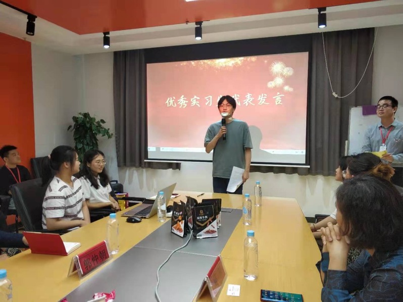 优秀实习生代表江帆在总结表彰会上发言,就如何做一名不抱怨的员工,如何发现问题、思考问题并提出方案解决问题等分享了实习收获和成长感悟。
