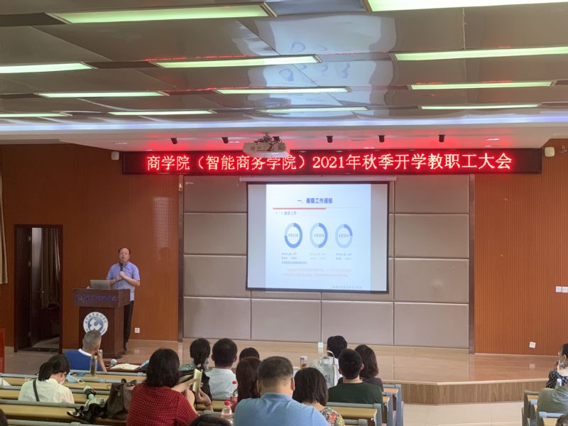 武职网讯(通讯员 沈易佳 摄影 陈俞安)8月30日上午,商学院、智能商务学院全体教职工齐聚图书馆报告厅,为新学年开学凝心聚力、谋划部署。