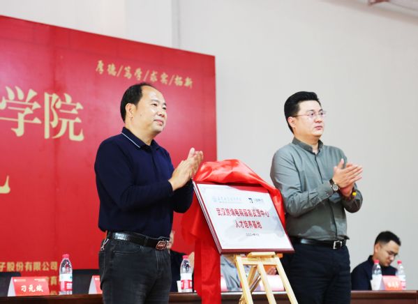 武汉跨境电商服务资源中心负责人、汉睿集团董事长张建波,奇安信科技集团副总裁魏雨露等企业代表,党委书记、校长李洪渠,副校长刁元斌、郭沙,学校相关职能部门负责人,智能商务学院、信创学院领导和教师代表出席典礼。典礼仪式由副校长郭沙主持。