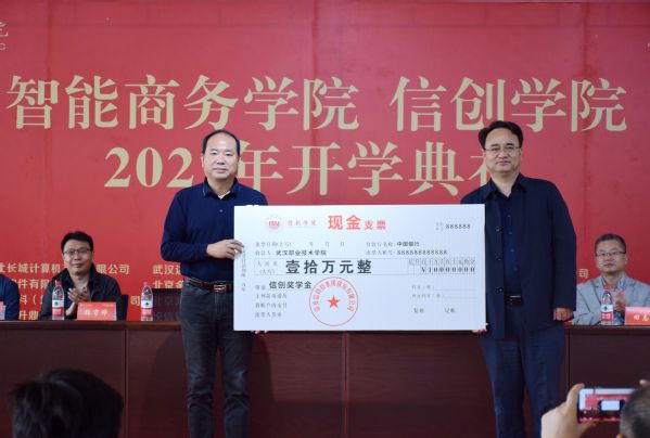 典礼仪式上,还举行了跨境电商人才培养基地企业授牌仪式和信创学院企业奖学金成立及捐赠授牌仪式。在全体师生《歌唱祖国》的合唱声中,开学典礼落下帷幕。