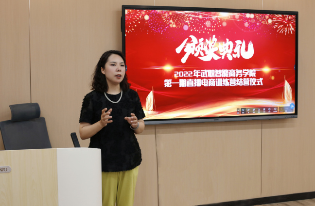 周蓉在结业颁奖典礼上谈到:直播电商训练营通过真实运营项目实训,对于学生的职业精神、职业素养和专业技能有着很大的提升。电商行业是一个非常年轻的行业,同学们要想成为行业佼佼者,需要不断地尝试新的技能,不断学习和成长。周蓉希望同学们全面提升职业综合能力,在校期间打好基础,成为市场所需的电商人才。