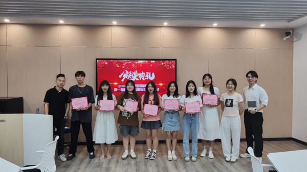 武职网讯(通讯员 杨宁)6月28日,由武汉职业技术学院智能商务学院和武汉耀嘉影视传媒有限公司联合举办的2022年第一期“直播电商训练营”在光谷东校区南翼楼迎来结业颁奖典礼。智能商务学院院长周蓉,直播实训项目指导老师杨宁、王丽婷、明耀争、郭黎等教师代表与训练营学员齐聚一堂,共同见证第一期“直播电商训练营”学员顺利结业。