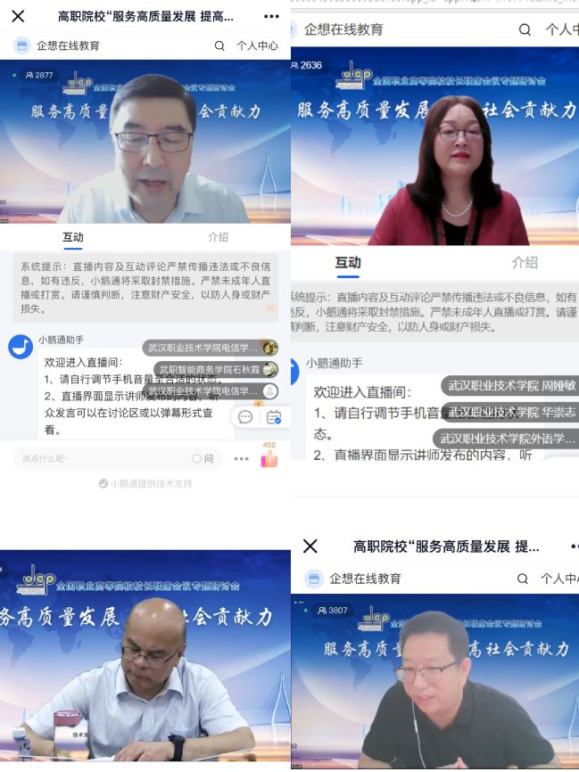 7月2日上午,全院教职工在线上参加了由全国职业高等院校校长联席会召开的“服务高质量发展提高社会贡献力”的线上专题研讨会。会后老师们就研讨会精神结合学院发展状况在交流群中进行交流,对推动现代职业教育高质量发展表述自己的见解和决心。