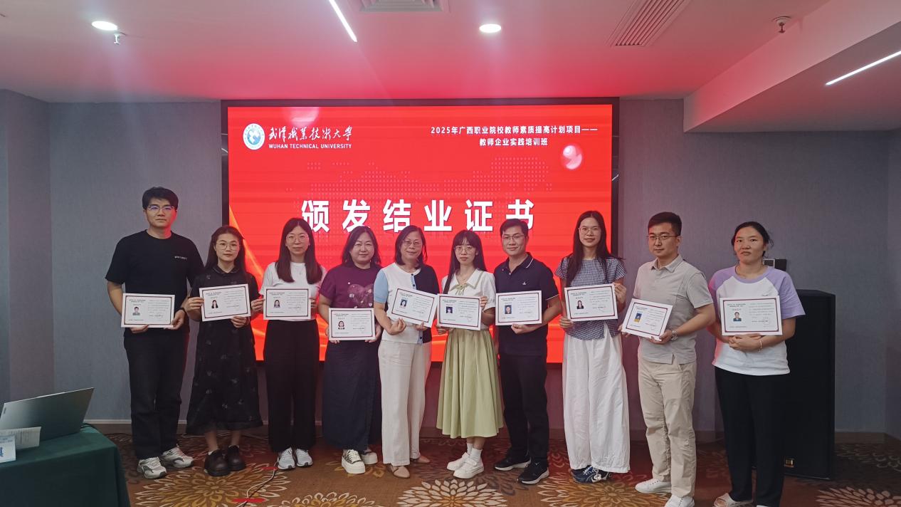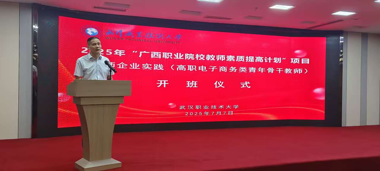 8月3日,由广西壮族自治区教育厅主办、武汉职业技术大学承办的2025年“广西职业院校教师素质提高计划”——高职电子商务类青年骨干教师企业实践培训圆满收官。来自广西壮族自治区多所高职院校的26名电子商务类专业骨干教师完成为期28天的培训任务,顺利结业。