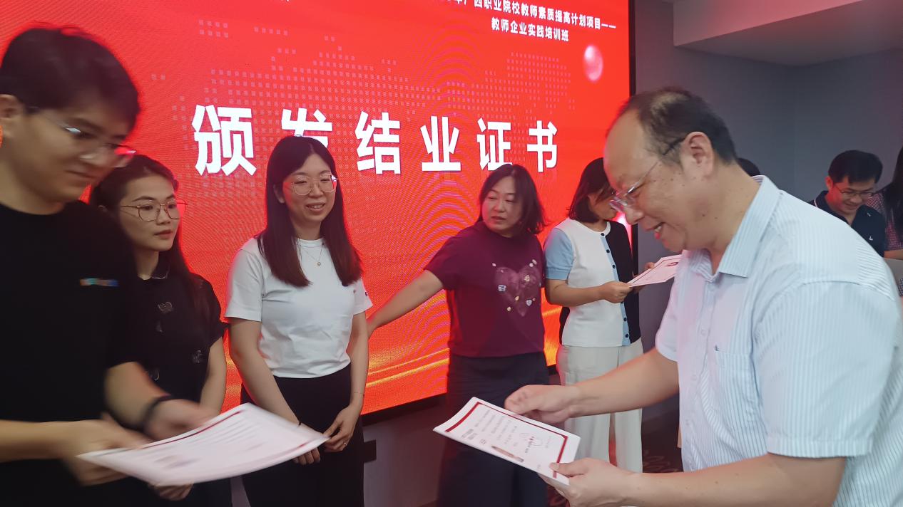 8月2日,培训班举行结业仪式。 智能商务学院党委书记敖锋为学员颁发结业证书,勉励大家将所学融入教学实践,创新方法、提升质量,为广西职教发展注入新动能。