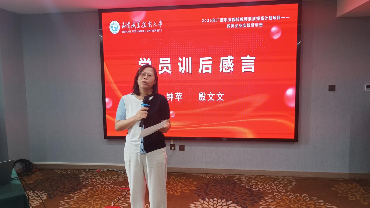 南宁职业技术大学教师钟苹作为学员代表分享了学习心得:“四周研修是一场知识与视野的深度洗礼,从理论知识的深化到实践技能的真切体验,让我深刻感受到技术变革对职业教育的重塑力量。”