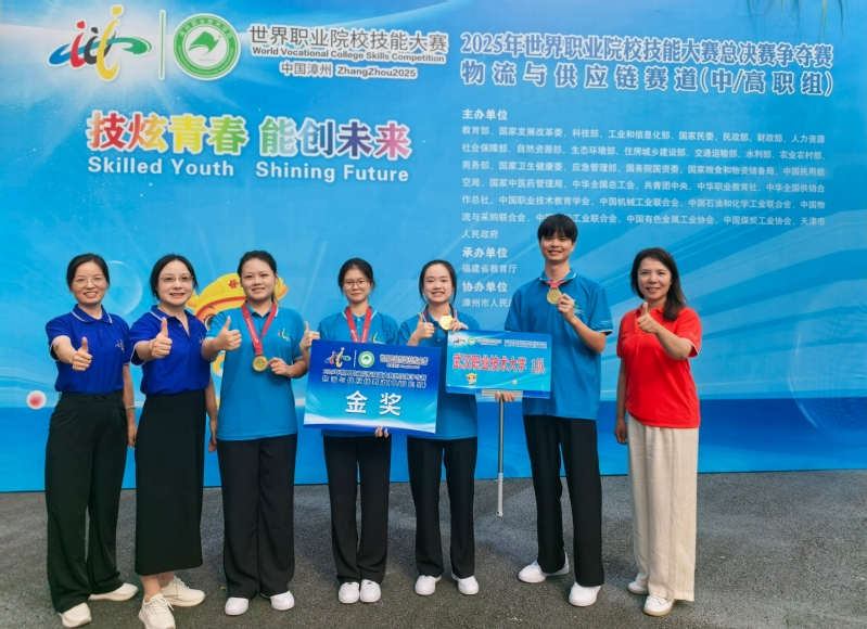 新闻网讯(通讯员 李雪平)8月31日,2025年世界职业院校技能大赛总决赛争夺赛物流与供应链赛道(高职组)在福建漳州圆满落幕。武汉职业技术大学现代物流管理专业刘美、张香雨、伍志福、王静组成的参赛团队,凭借扎实专业能力和出色协作精神,从全国131支参赛队伍中脱颖而出,勇夺全国金奖。这是我校继2024年获该赛项金奖后再次折桂,实现蝉联。