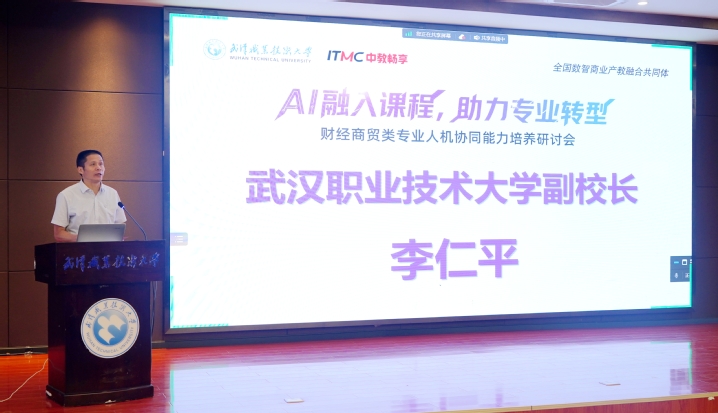 开幕式上,武汉职业技术大学副校长李仁平致欢迎辞。他介绍了学校办学成果,重点分享了学校在“AI+专业”教学改革方面的创新实践。李仁平表示,构建“人机协同、数智融合”的教学新模式是当前职业教育发展的重要方向,希望以此次研讨会为契机,为推动财经商贸类专业的数智化转型汇聚智慧、凝聚共识。