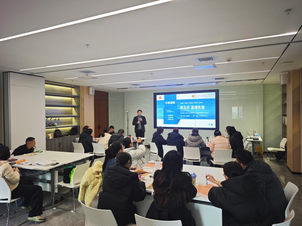 新闻网讯(通讯员刘书琴)为深入服务地方经济社会发展,助力重点群体技能提升,近日,受武汉市东西湖区人力资源和社会保障局邀请,武职大智能商务学院教师杨俊超作为特邀专家,为“东西湖区直播电商(网创)培训班”进行了为期七天的系统授课。此次培训旨在精准赋能区域失业人员,通过掌握直播电商新技能,拓宽就业渠道,实现高质量再就业。